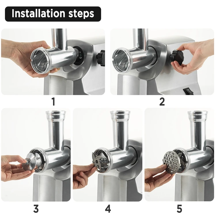 2000w Electric Meat Grinder With Sausage Filling Tubes Diecasting Housing For Home Use