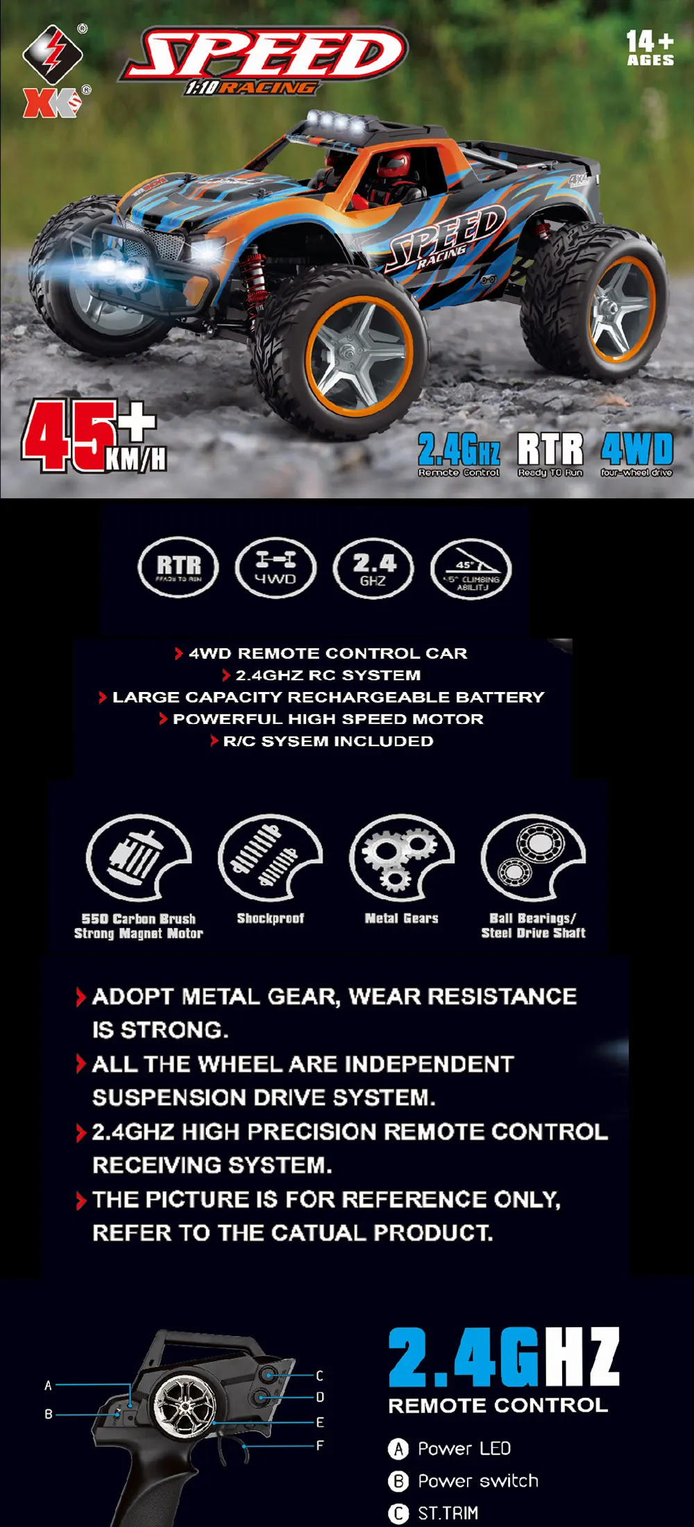 Description | Wltoys XK 104009 1/10 4X4 4WD electric race mud desert r c car toy metal oil shock 28+ miles radio control rc rock crawler truck |