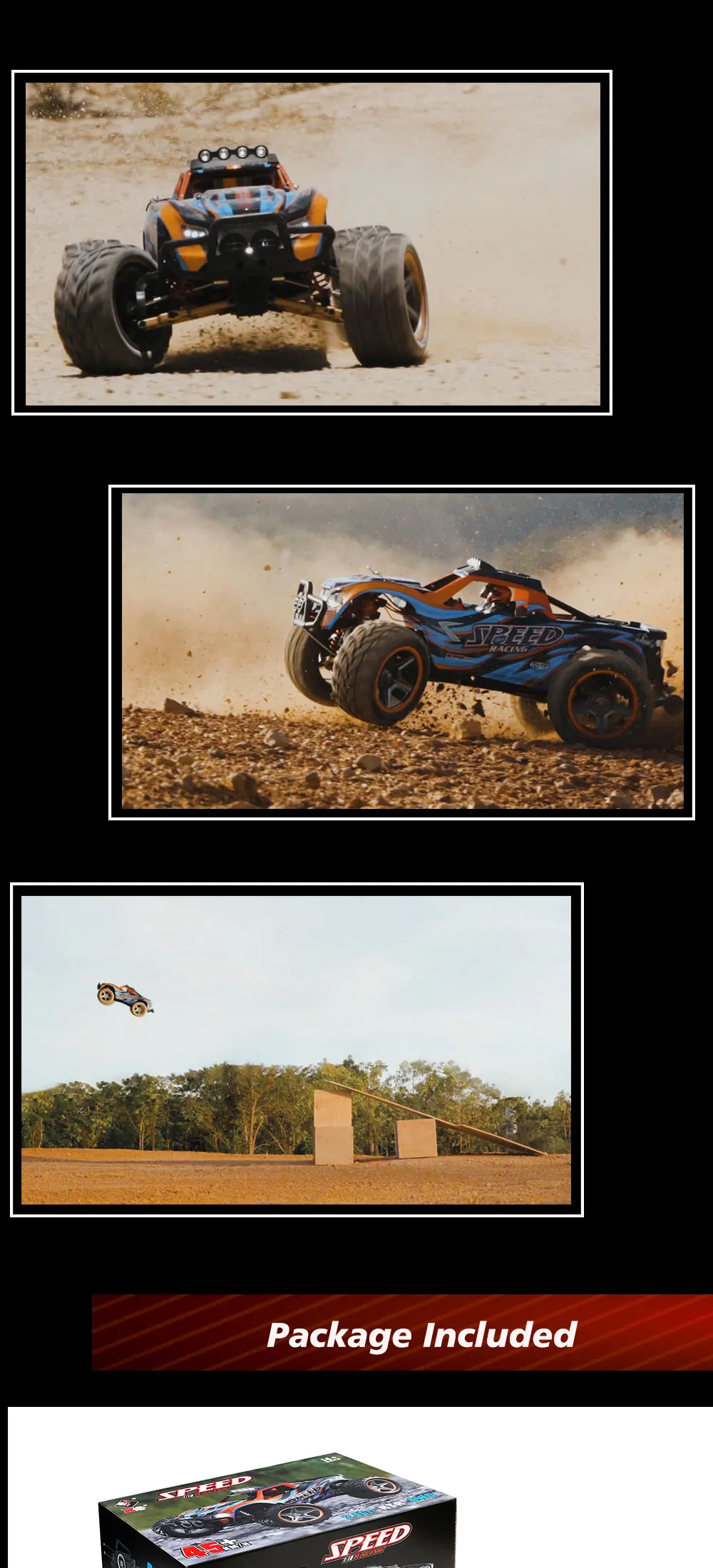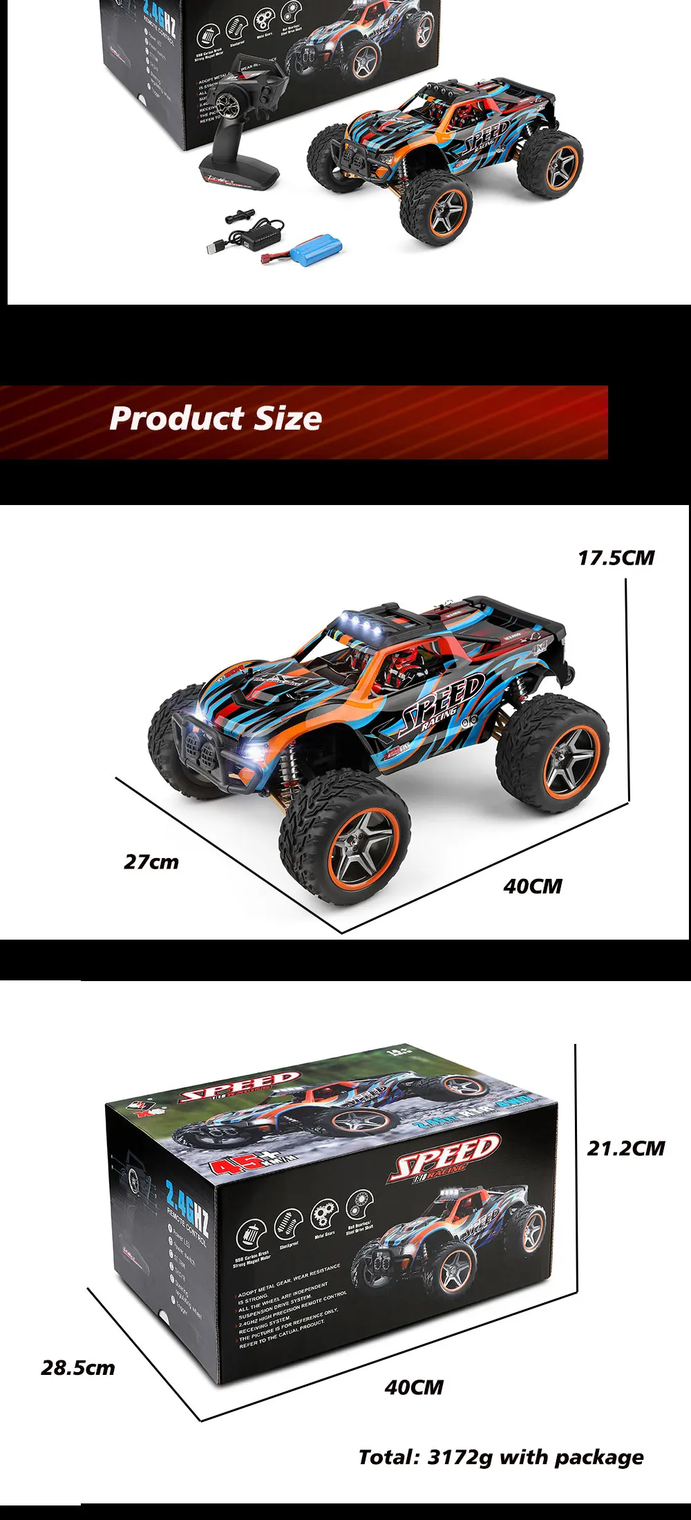 Package includes | Truck * 1 Transmitter * 1 7.4v battery * 1 USB charger * 1 Manual * 1 Color box * 1 |