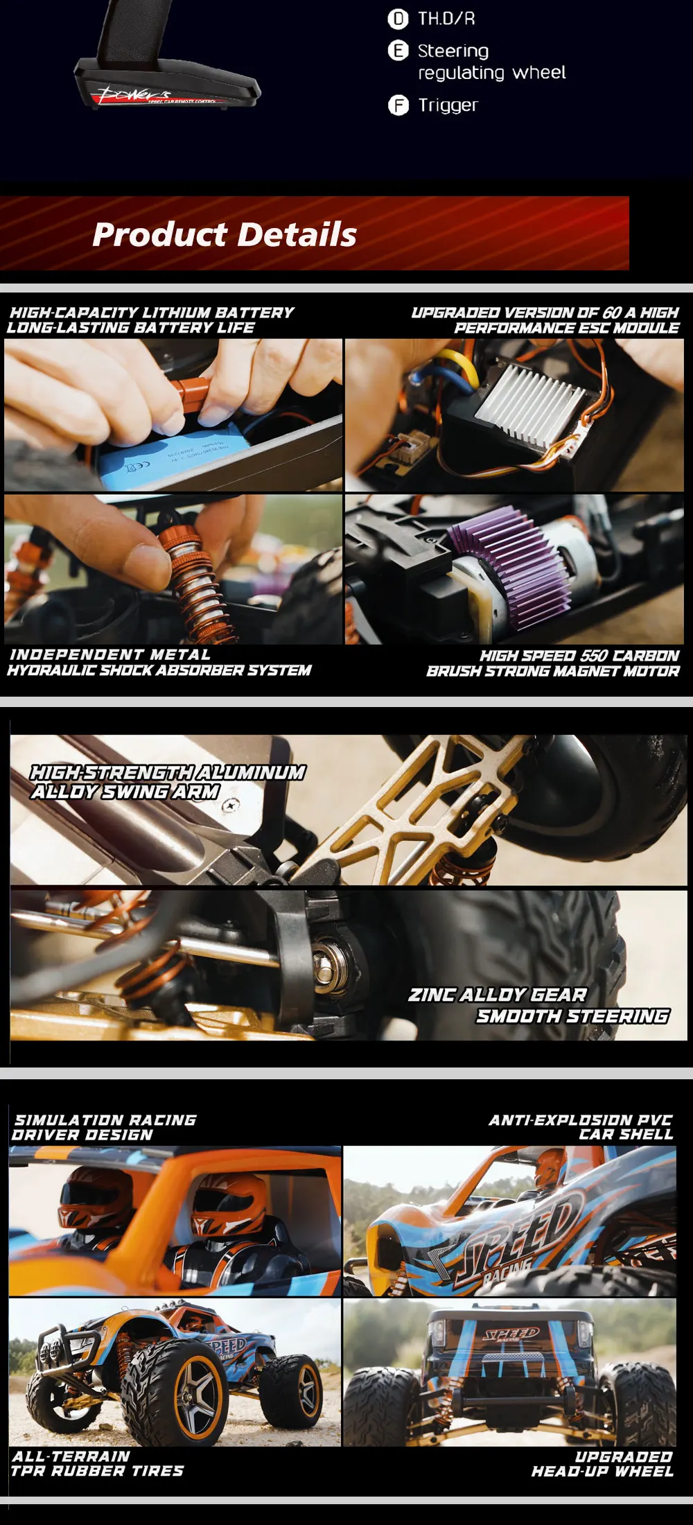 4. The high-speed ball bearing and steel drive shaft of the whole vehicle greatly increase the service life of the remote control vehicle;