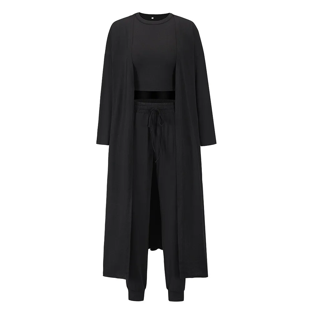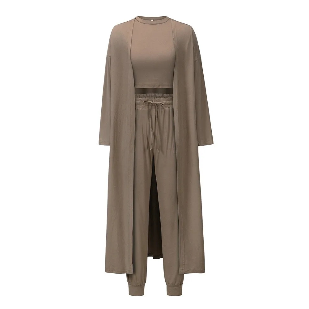 Autumn Winter Knitted Knitted Slim Fit Style Tank Top Long Pants Sports Set Pants Gym Wear Three Piece Set Women Clothing