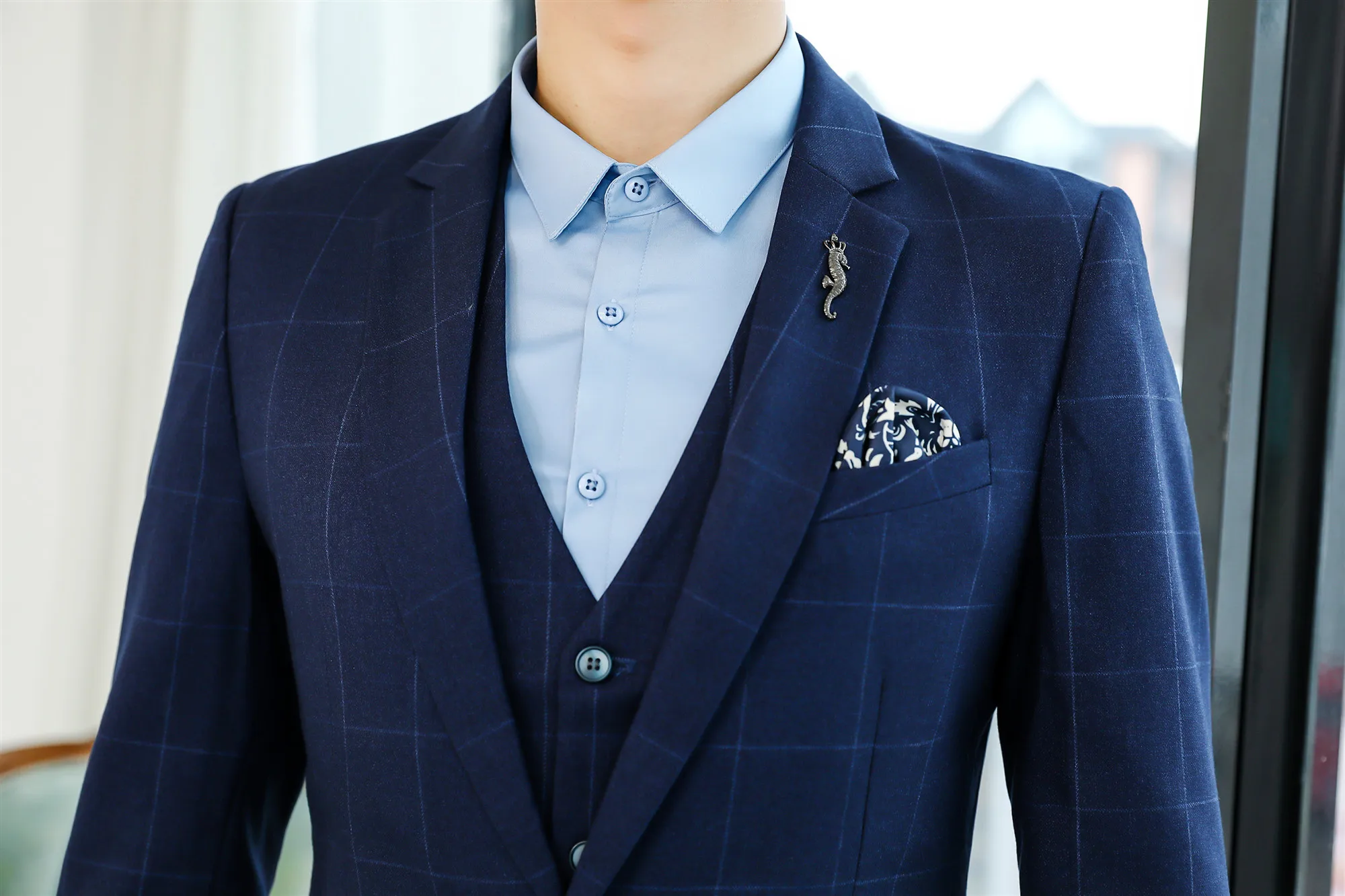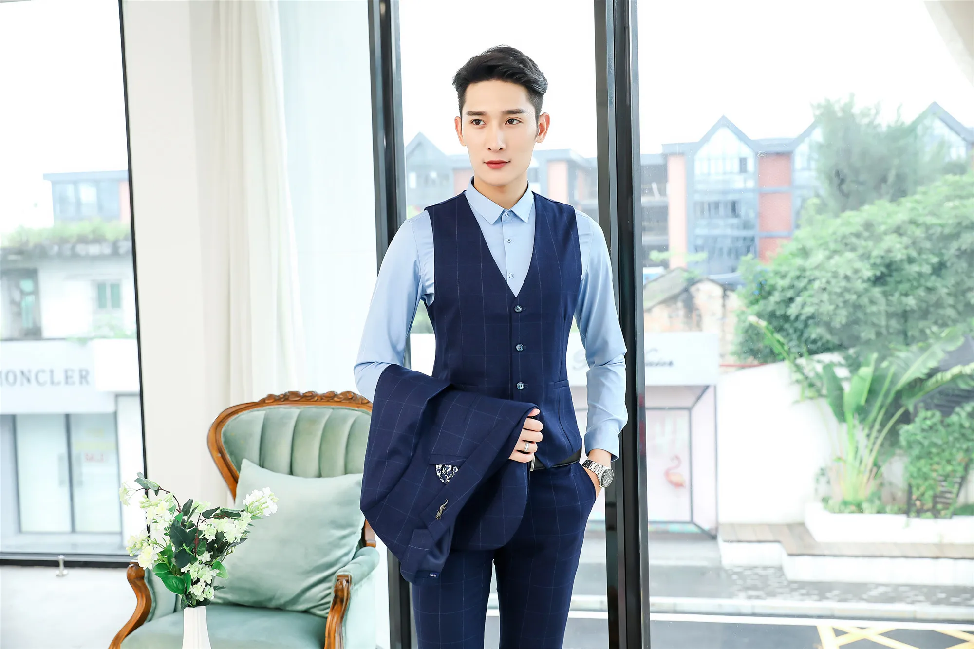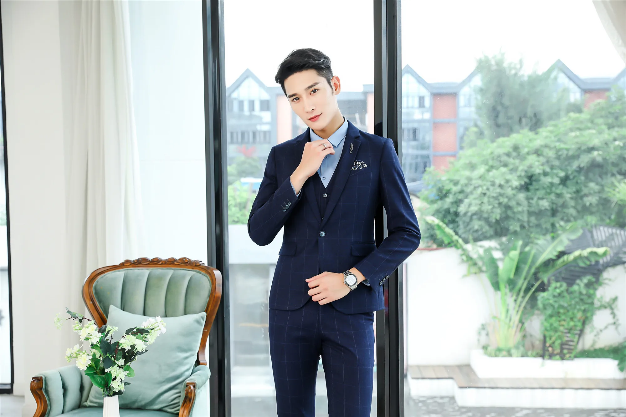 men 's casual slim fit business office uniform wedding blazer suits 3 pieces for men