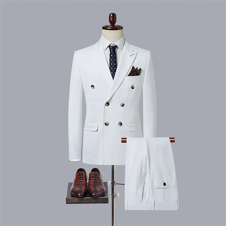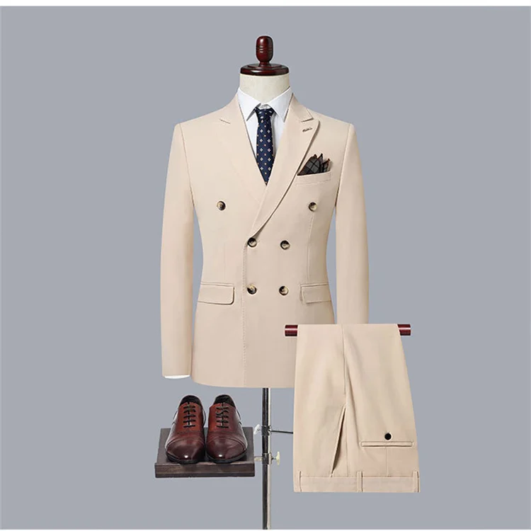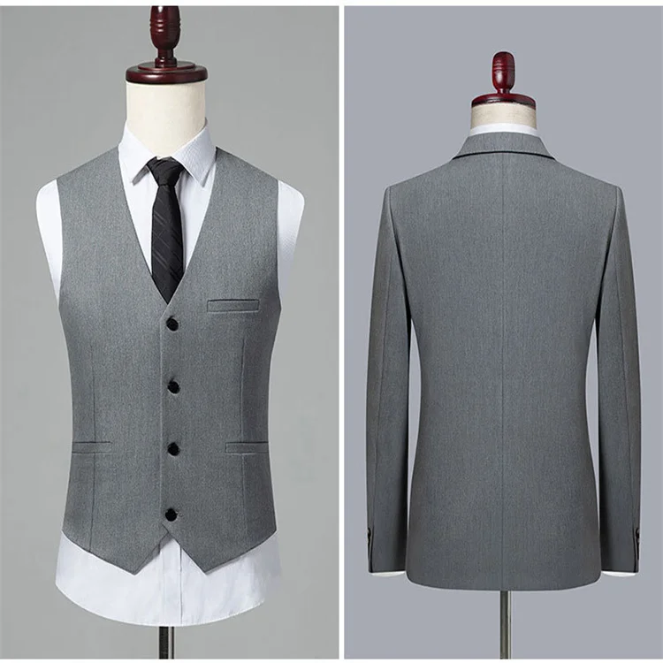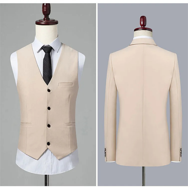 Wholesale Double Breasted Suit Set Simple Solid Slim Trend Wedding Party Three Piece Business Men Suits Set