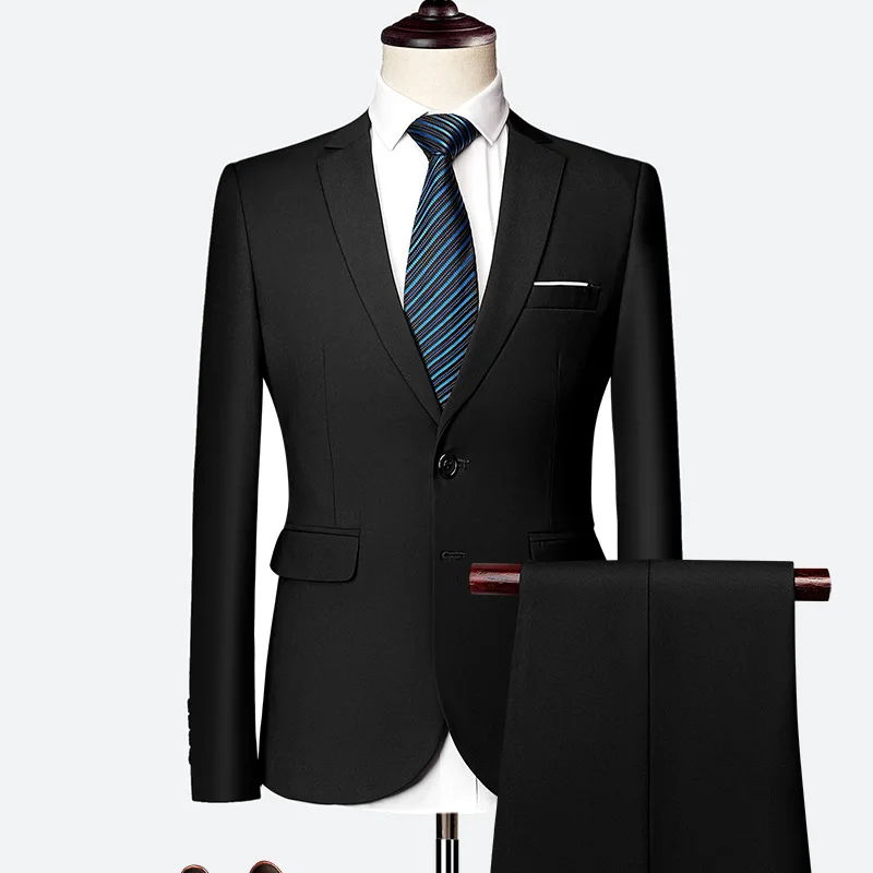 New Arrivals Light Blue Elegant Single-breasted Blazer Suit Wedding Banquet Gentleman 2 Pieces Suit men business blazers for men