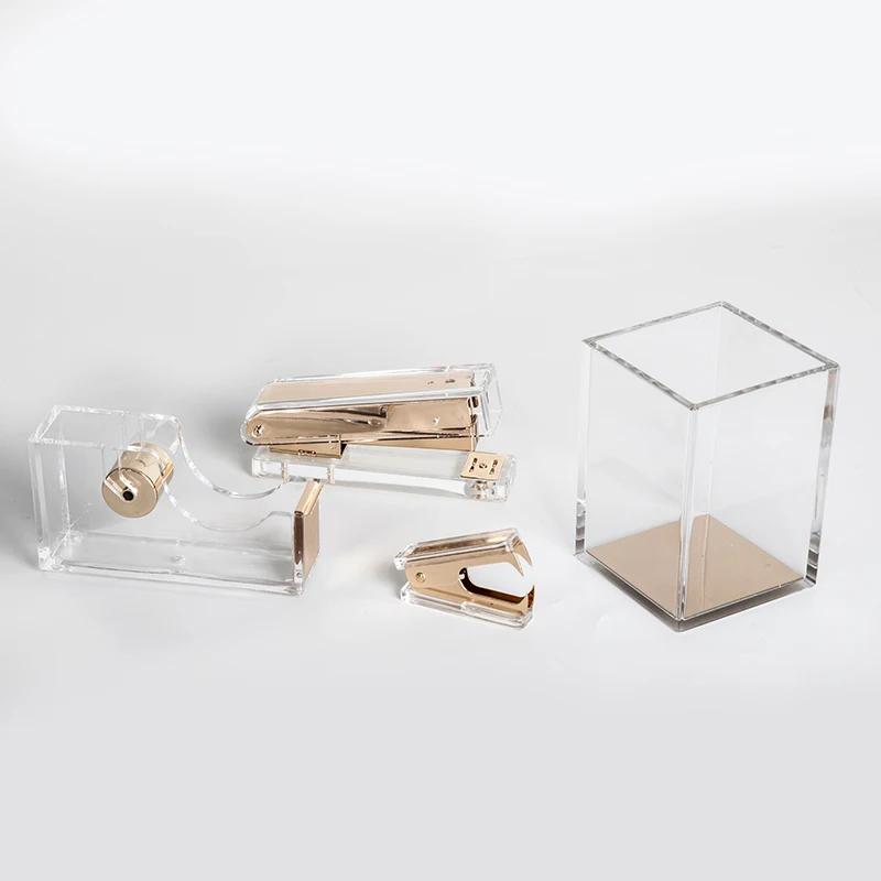 Office Supplies And Stationery Set High End Stapler Acrylic Pen Holder Acrylic Office Stationery 4 Units Set
