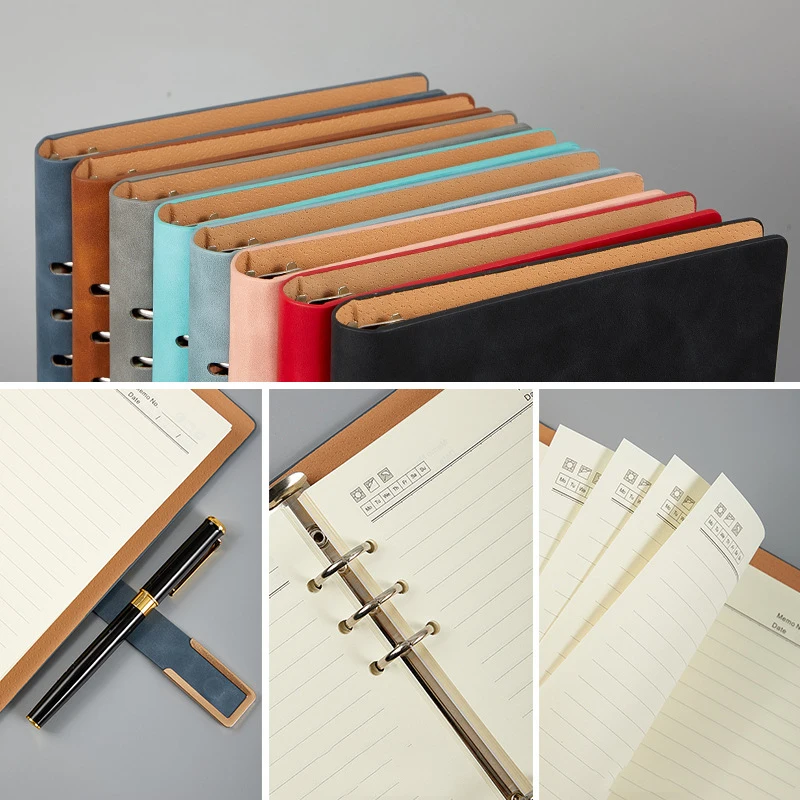 A5 Spiral Notebook 6 Holes Binder Pu Leather Hardcover Loose Leaf Personal Travel Diary Journal Business Planner Stationery