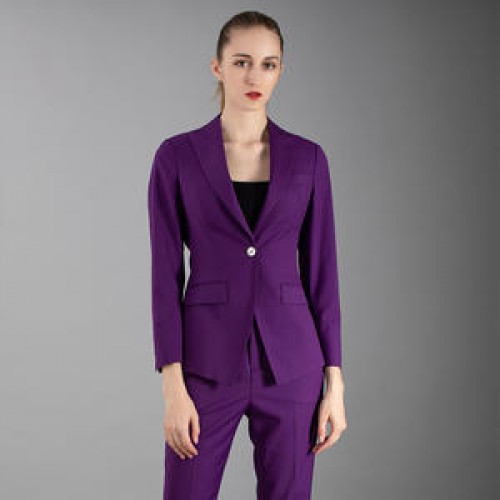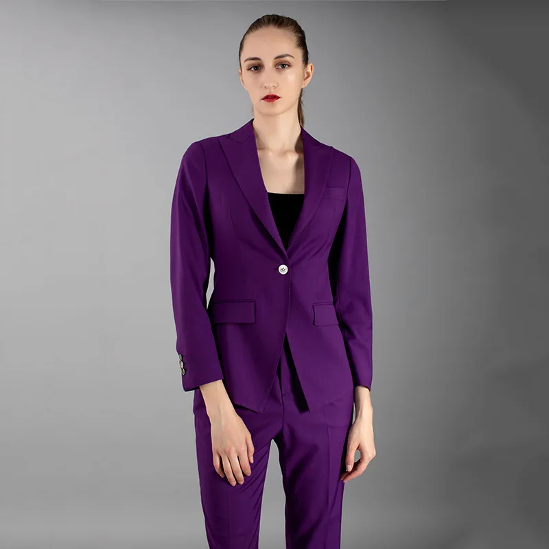 Custom Autumn Winter Women's Business Clothing Oversized Ladies Two Piece Elegant Long Sleeve Sets Purple Blazer Suit