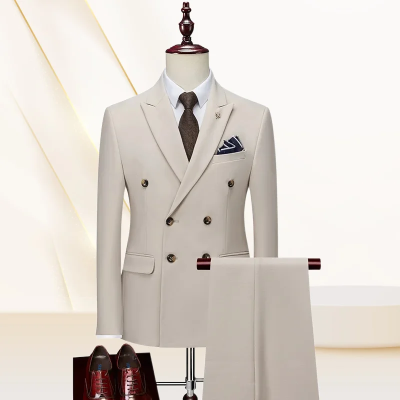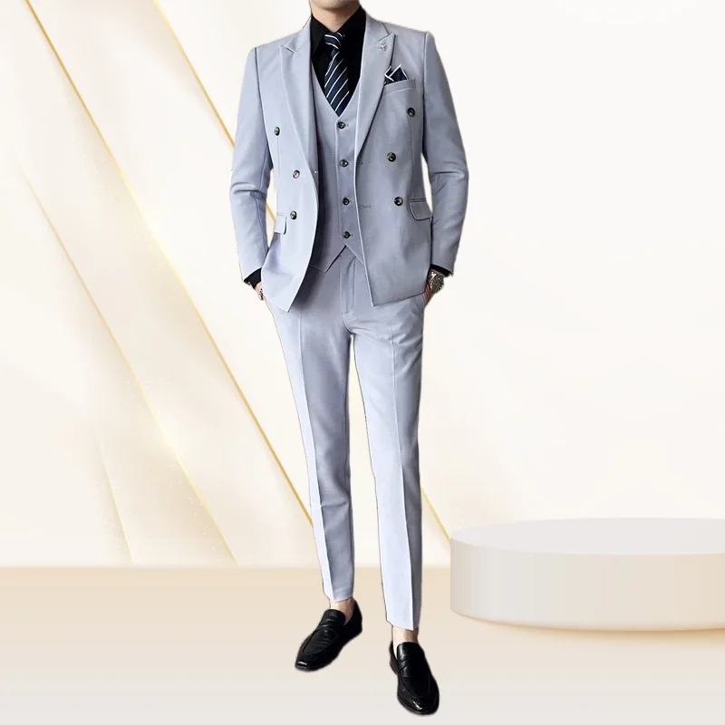3 Pieces Set Jacket Pants 2023 New Men Suits Boutique Slim tuxedo Business Groom Wedding Double Breasted Suit set for men