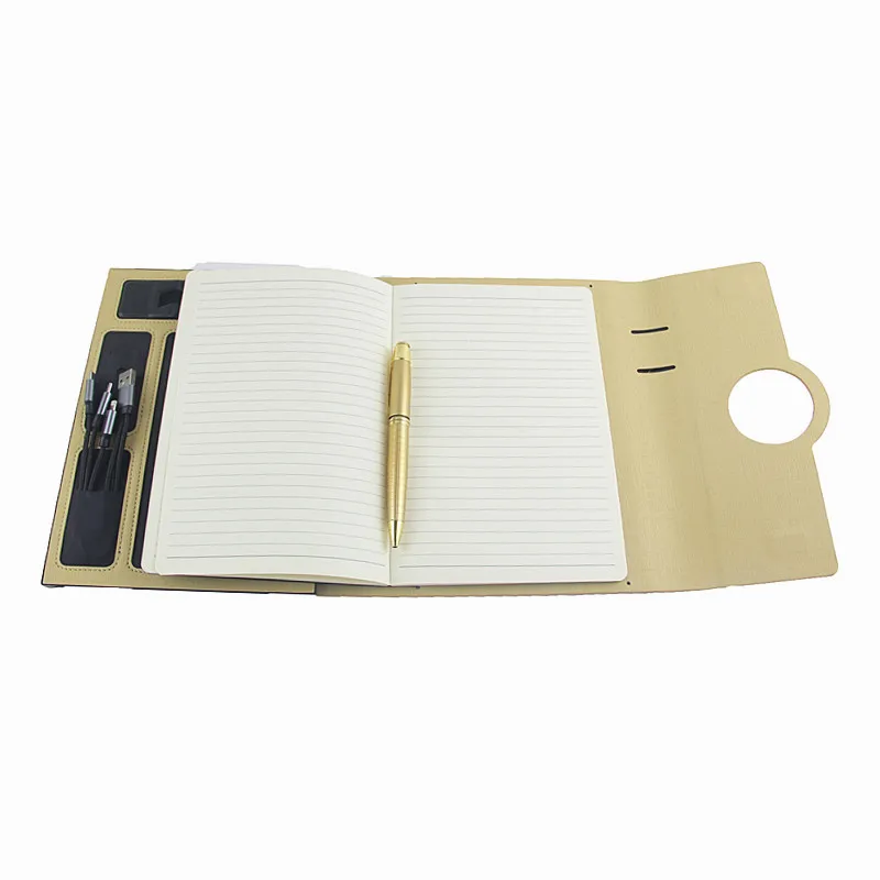 2023 Hot Sale Custom LED Logo Wireless Charging Power Bank Notebook Fashion Office Supplies PU Leather Diary Notebook
