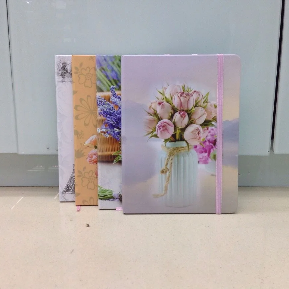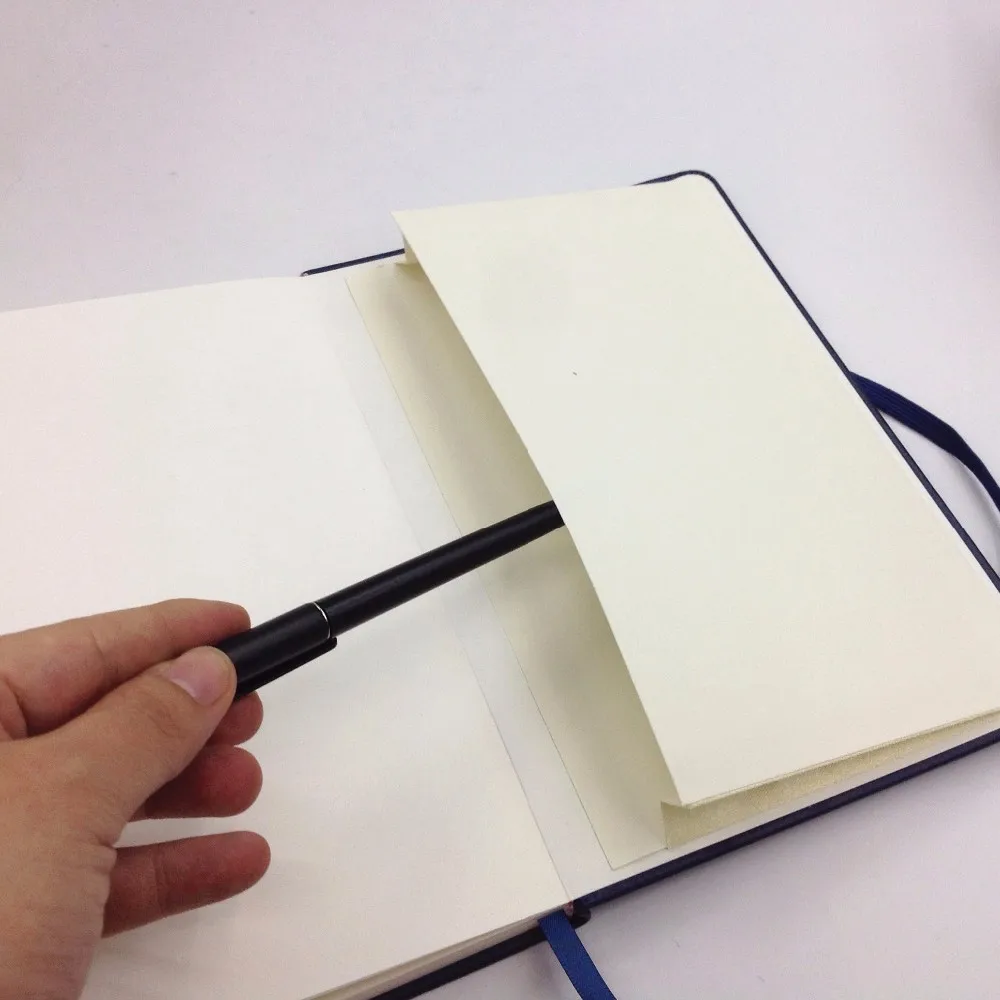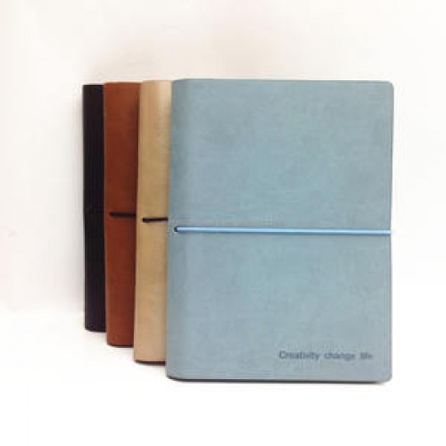 Moleskine type notebook: with elastic band for closure + back pocket at end page
